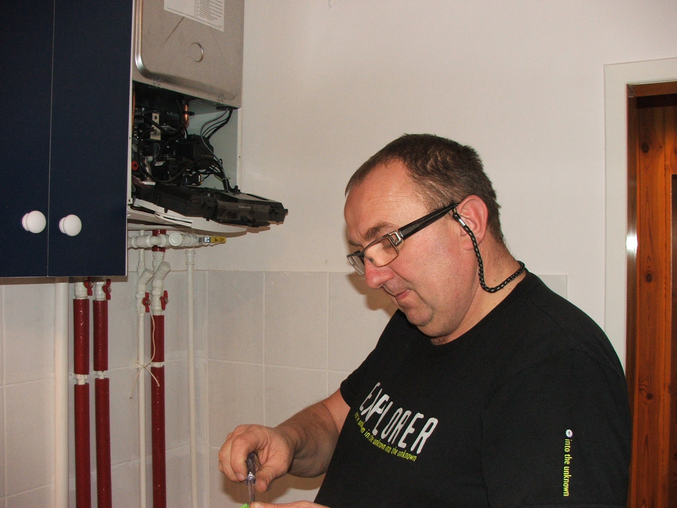 Po wcześniejszej rozmowie telefonicznej umówiłem się z Panem Jarosławem na dzień 17 listopada 2015 roku. Punktualnie tego dnia instalator szybko i fachowo wymienił pokrywę kotła, która była wcześniej uszkodzona podczas transportu oraz kabel zasilający na dłuższy z powodu daleko umieszczonego kontaktu od kotła.