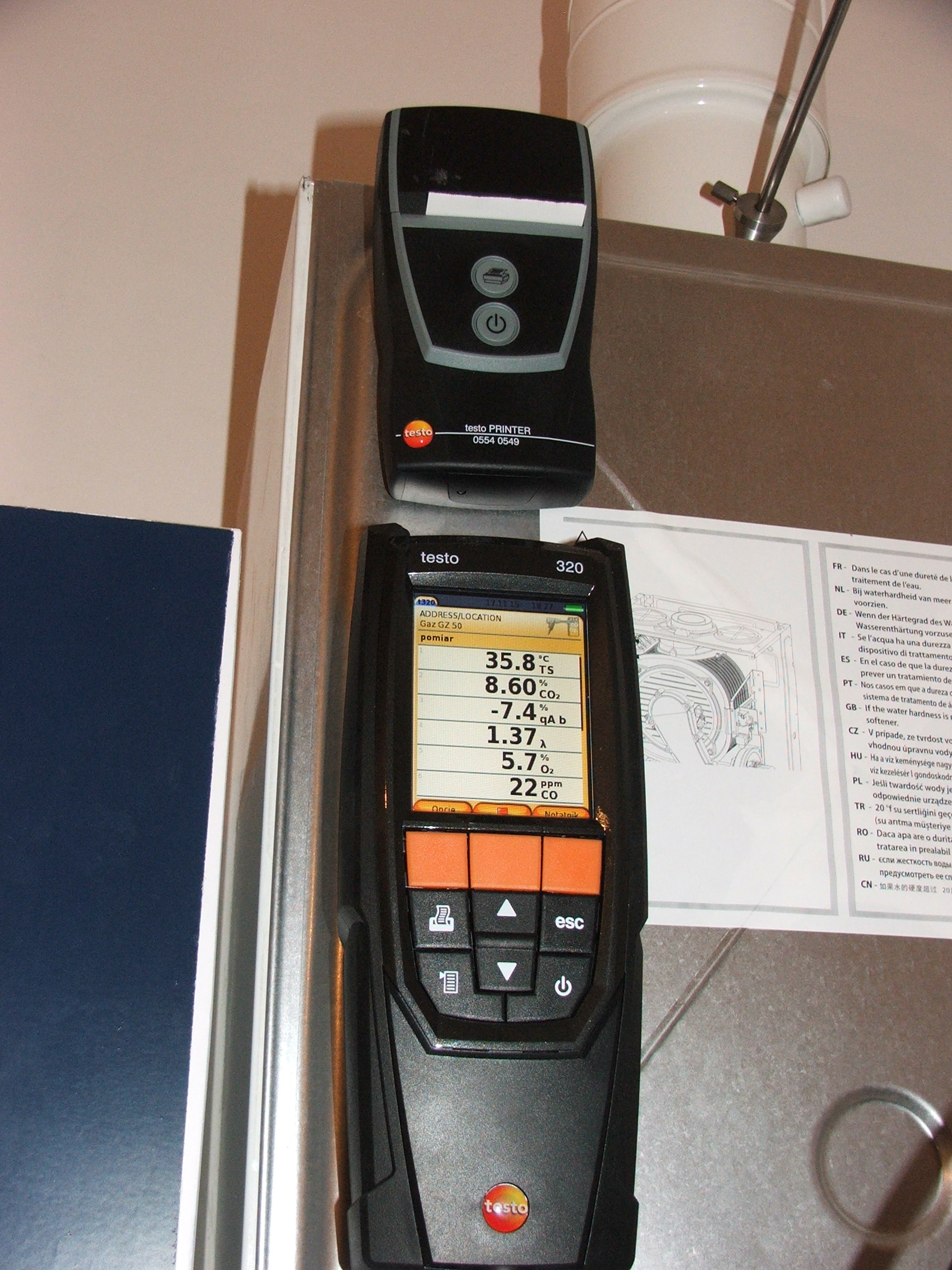 Oto wartości spalin w dniu 17.11.2015 o godzinie 18:31 przy zastosowaniu paliwa GAZ GZ 50 wyniosły:
